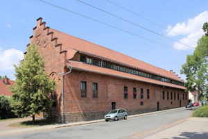 - langegestrecktes, freistehendes Stallgebäude