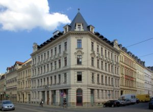 Das Wohnhaus Arthur-Hoffmann-Straße 51 Leipzig steht südlich der Innenstadt nahe der Peterskirche in Blockrandbebauung.