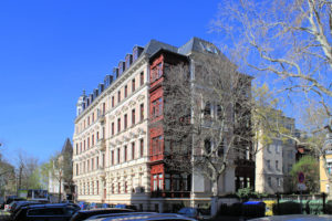 - viergeschossig auf hohem Sockelgeschoss, Mezzaningeschoss, ausgebautes Dachgeschoss