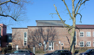 - langgestreckter Ziegelbau, erhöhter seitlicher Kopfbau, angrenzend Hörsaalgebäude und flacher Schwesternwohntrakt