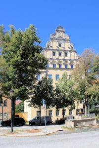 - viergeschossig auf hohem Sockelgeschoss, ausgebautes Dachgeschoss