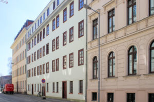 Das Wohnhaus Lortzingstraße 9 in Leipzig steht in geschlossener Blockrandbebauung nahe dem Naturkundemuseum.