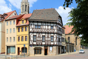 Das Wohn- und Geschäftshaus Markt 21 in Merseburg steht nahe der Stadtkirche Merseburg in geschlossener Bebauung.
