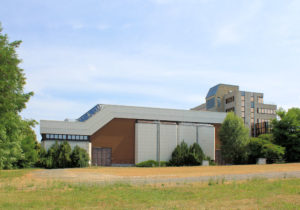 - großer Hallenbau mit mehrgeschossigem Anbau