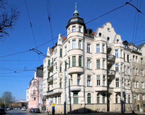 Das Wohnhaus Nordplatz 3 in Leipzig steht in geschlossener Blockrandbebauung zwischen der Michaeliskirche und dem Leipziger Zoo.