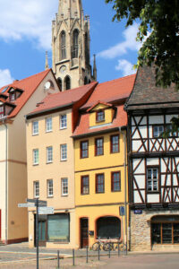 Das Wohn- und Geschäftshaus Markt 22 in Merseburg steht nahe der Stadtkirche Merseburg in geschlossener Bebauung.