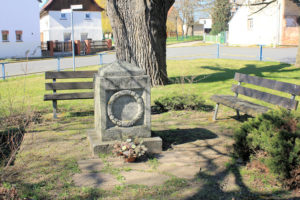 Der Gedenkstein für die Gefallenen des 1. Weltkriegs befindet sich in der Ortsmitte von Pödelwitz auf einer Grünfläche.