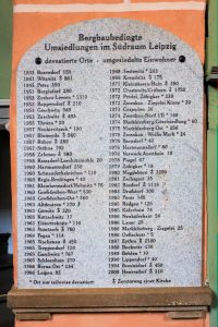 Gedenktafel für die devastierten Orte im Südraum Leipzig in Borna,
