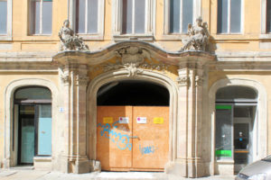 - Das Portal Katharinenstraße 19 in Leipzig ist in einem schadhaften Zustand.
