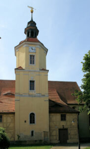 Die Ev. Kirche in Annaburg steht am Markt in Annaburg nahe dem Schloss.