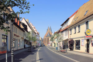 Östlich von Markt und Pfortenstraße bis zum Breiten Turm entwickelte sich zwischen 1370 und 1410 die erste Neustadtsiedlung. Um 1390 bis 1410 erfolgte der Ausbau der ringförmigen Befestigungsanlage mit zwei Toren.