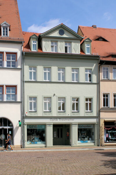Das Wohnhaus Jakobstraße 25 steht am Holzmarkt in Naumburg in geschlossener Bebauung.