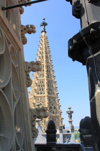 Beiden Kirchen sind die steil aufragenden Spitzhelme gemein, die in ihrer durchbrochenen Bauweise filigran und lichtdurchlässig in den Himmel ragen.„Das ist unser Kölner Dom“ sagte ein Mitglied des Vereins zur Erhaltung der St. Aegidienkirche in Oschatz zu mir, nachdem ich die steilen und engen Stufen des Südturms hinaufgestiegen war und den Ausblick auf die Stadt und die Landschaft genießen konnte.