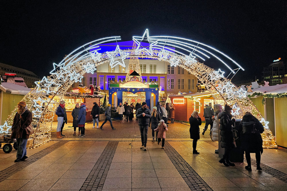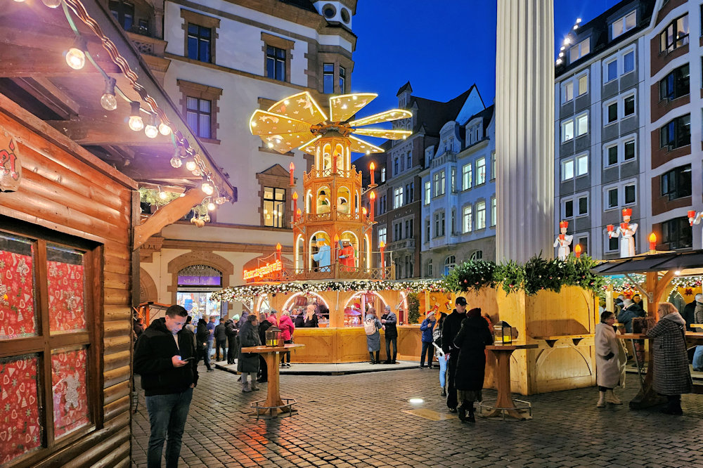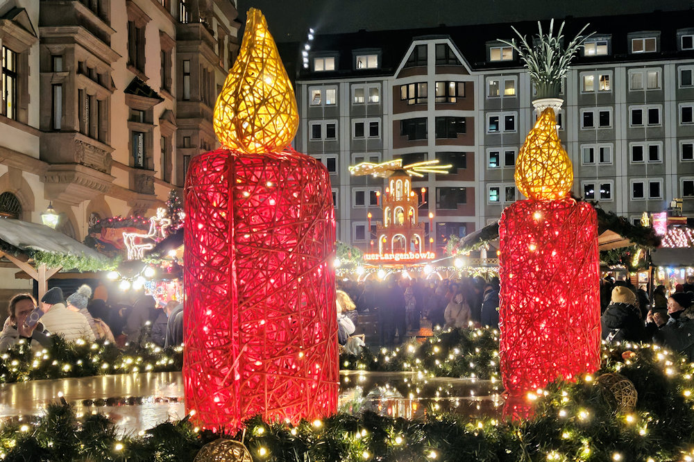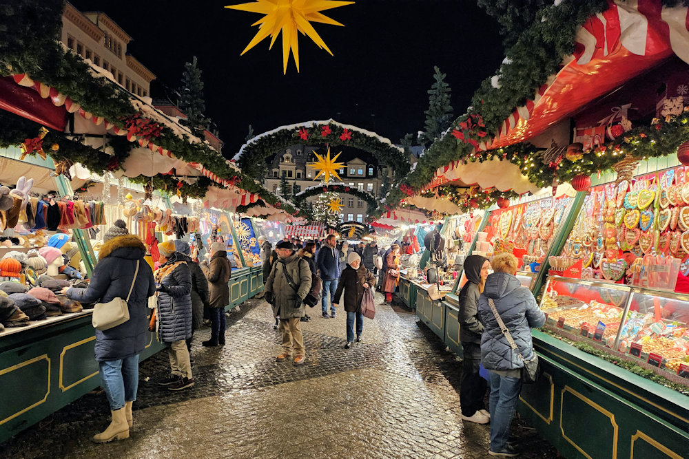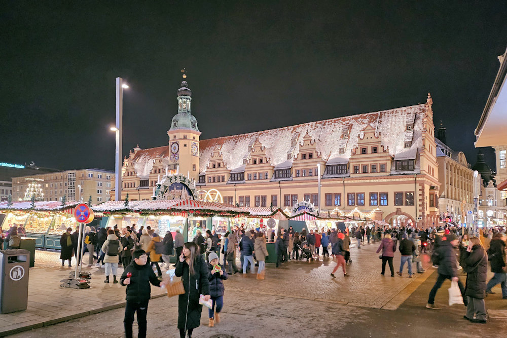 Vom Augustusplatz über die Grimmaische Straße, von der Nikolaikirche über das Salzgässchen bis zur Petersstraße reihen sich weihnachtlich geschmückte und beleuchtete Buden. Mittelpunkt des Leipziger Weihnachtsmarktes ist der Marktplatz. Vor der Kulisse des Alten Rathauses steht eine kleine Weihnachtsstadt.