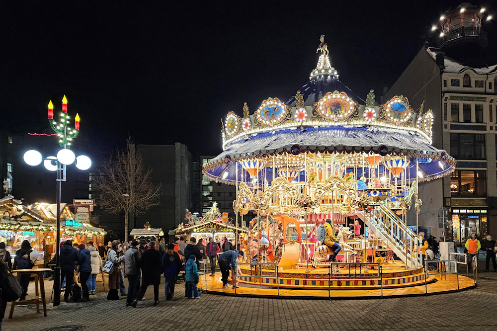 Der Märchenwald auf dem Augustusplatz lädt Kinder zum Entdecken ein, auf dem Naschmarkt entführt der historische Weihnachtsmarkt in vergangene Zeiten. Vom Riesenrad auf dem Augustusplatz lässt sich das bunte Treiben in der Leipziger Innenstadt von oben bestaunen. Ein Anziehungspunkt ist jedes Jahr das historische Karussell an der Reichsstraße. Über 300 Buden laden die Leipziger und ihre Gäste in jedem Jahr auf einen der schönsten Weihnachtsmärkte in Deutschland ein. International ist der er auch, der Leipziger Weihnachtsmarkt – Finnisches Dorf vor dem Gewandhaus, Südtiroler Dorf vor der Universität oder im Schweizer Dorf auf dem Burgplatz laden zum Schmaus ein.Wer dem Trubel entfliehen möchte, dem sei ein Spaziergang durch die Höfe und Passagen in Leipzig empfohlen. Weihnachtliche geschmückt, erstrahlen die Passage im Licherglanz. Der Höhepunkt zu jeder Adventszeit ist der festliche geschmückte Weihnachtsbaum in der Mädler-Passage.