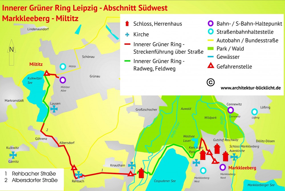 Sehenswertes am Inneren Grünen Ring zwischen Markkleeberg und Miltitz