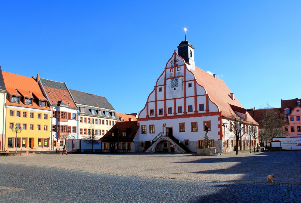 - Grimma, historische Altstadt mit Stadtkirche, Schloss und Rathaus, Pöppelmannbrücke,