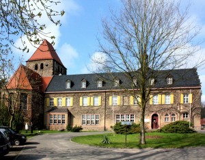 Die in romanischer Zeit auf einem Porphyrfelsen am Ufer der Mulde gegründete Kirche wird 1473 Klosterkirche des durch Kurt von Ammendorf gestifteten Franziskanerklosters. Ab 1541 wird das Kloster unter Johann von Taubenheim zum Rittergut umgebaut. Adolph Meisel erbaut Ende des 19. Jahrhunderts die heutige Zweiflügelanlage, unmittelbar anschließend an die romanische Kirche. Das Äußere besticht durch eine einfache, durch farbige Fenster- und Türgewände abgesetzte Fassade und einem Volutengiebel. Die beiden Gebäudeflügel und die Kirche umschließen einen malerischen Hof, der sich zur Mulde öffnet.