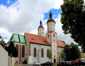 Die Autos ließen wir am Bahnhof in Wurzen stehen und gingen zu Fuß durch die Altstadt. Die St. Wenceslaikirche wurde 1275 zum ersten Mal erwähnt. Sie stand außerhalb der Stadtmauer in der Neustadt und war die Pfarrkirche des Neumarktes. Zwischen 1660 und 1673 wurde sie nach Verfall erneuert und erhielt zwischen 1873 und 1878 eine neue Ausstattung durch Hugo von Altendorff. Die dreischiffige, spätgotische Hallenkirche hat einen eingezogenen Chor mit 3/8-Schluss. Der Putzbau hat Maßwerkfenster, spitzbogige Zwillingsfenster und einen hohen Westturm auf quadratischem Grundriss mit barocker Haube und Laterne. Die heutige, spätgotische Fassade wurde im Jahr 1513 durch den Wurzener Bischof Johann VI. von Salhausen in Auftrag gegeben.