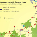 Auf der Dahlener-Heide-Radroute, dem Elberadweg, der Leipzig-Elbe-Radroute und dem Ökumenischen Pilgerweg (Jakobsweg) durch die Dahlener Heide