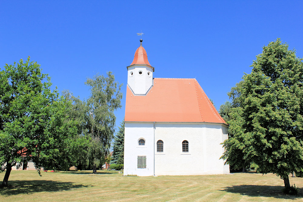 Ich radelte wieder nach Süden, nach Dautzschen. Die Kirche in Dautzschen aus der 2. Hälfte des 12. Jahrhunderts wurde 1672 nach der Zerstörung im Dreißigjährigen Krieg wieder aufgebaut.