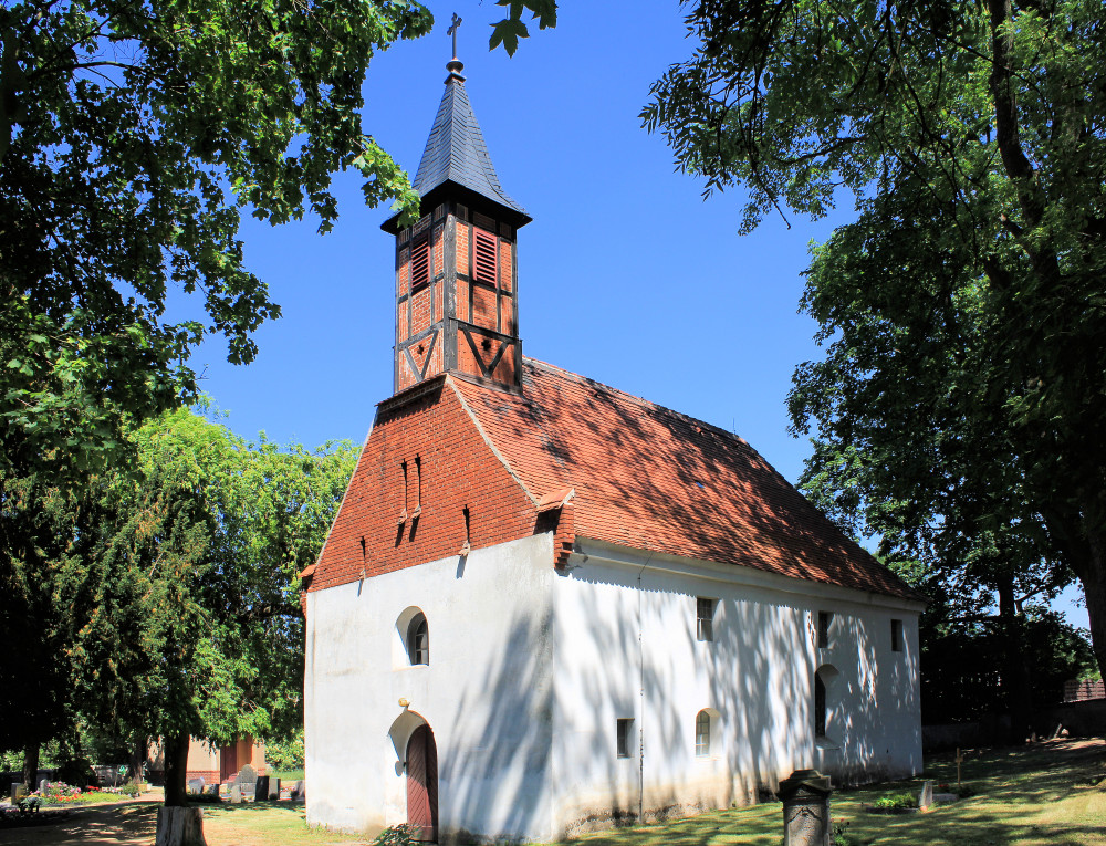Mein nächster Zielort war Großtreben. Die Kirche steht versteckt zwischen großen, alten Bäumen und wurde 1718 bis 1719 unter Verwendung eines älteren Vorgängerbaus errichtet. Das große Rittergut hat ein Herrenhaus aus dem 18. Jahrhundert wurde um 1900 umgebaut.