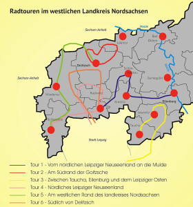 - Tour 1 – Radtour vom nördlichen Leipziger Neuseenland an die Mulde,