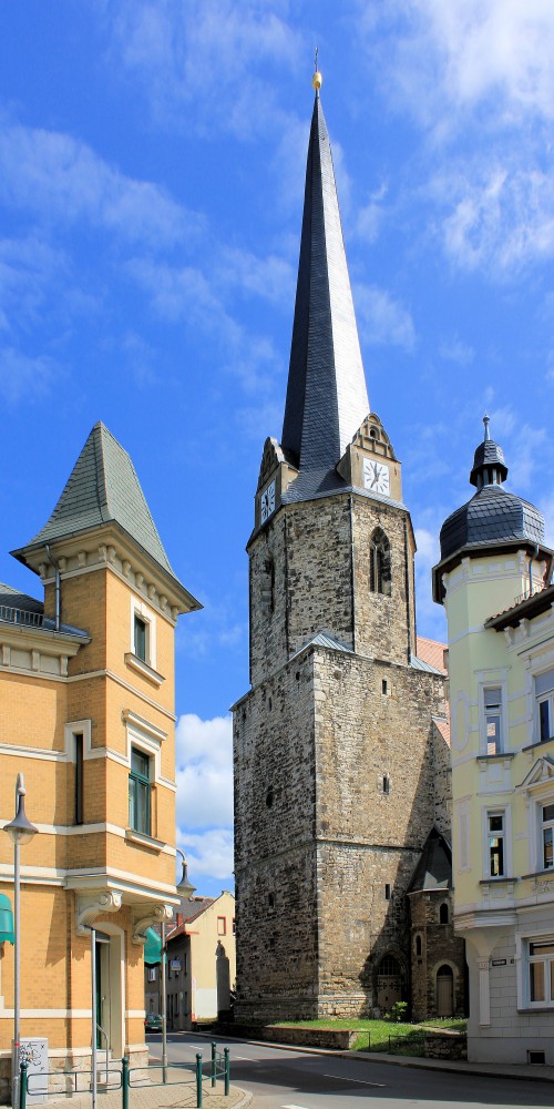 Schließlich in Weißenfels angekommen, führt der Radweg auf der Leipziger Straße in die Innenstadt. Weißenfels war zwischen 1656 und 1746 Residenzstadt der Herzöge von Sachsen-Weißenfels. Sie errichteten über der Stadt das Schloss Neu-Augustusburg und verwandelten Weißenfels in eine barocke Residenzstadt. Der einstige Glanz von Weißenfels lässt sich an den barocken Palais und Bürgerhäusern bis heute ablesen.In der Weißenfelser Salinendirektion wirkte der Akzessist Friedrich von Hardenberg, besser bekannt unter seinem Künstlernamen Novalis.