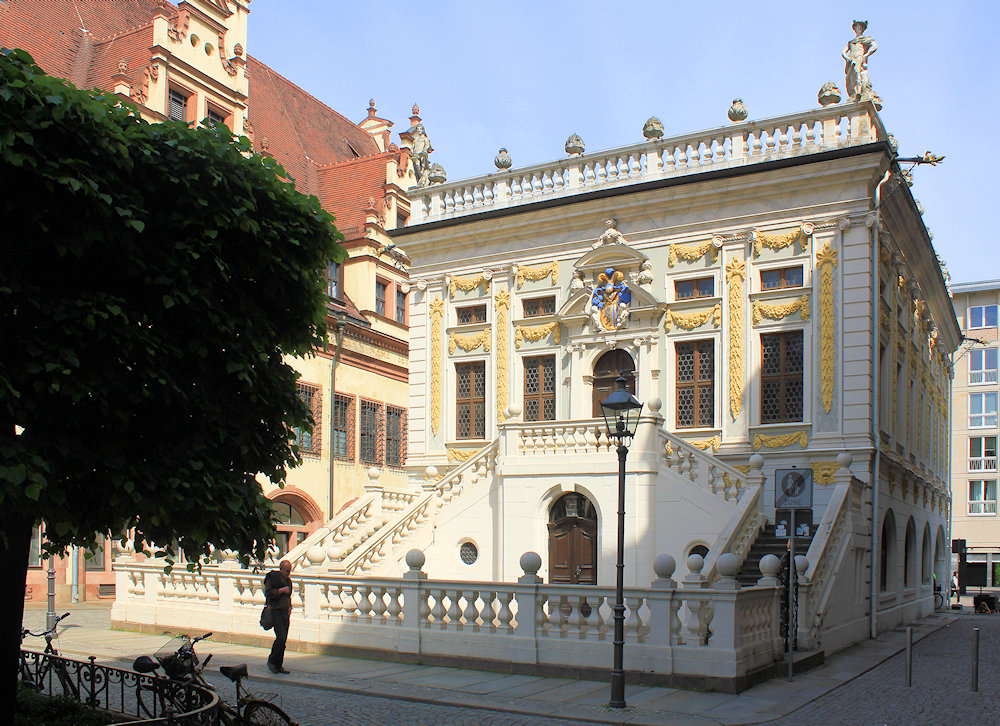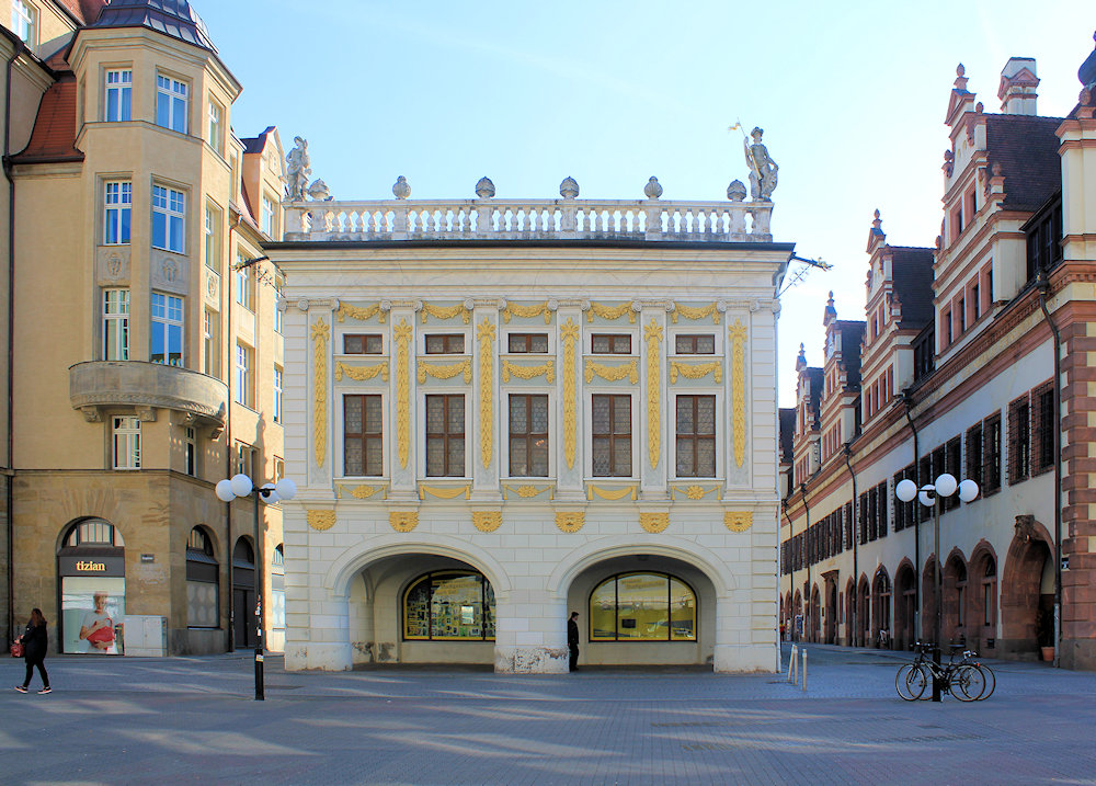 Die Alte Handelsbörse in Leipzig steht am Naschmarkt hinter dem Alten Rathaus.