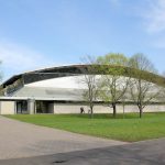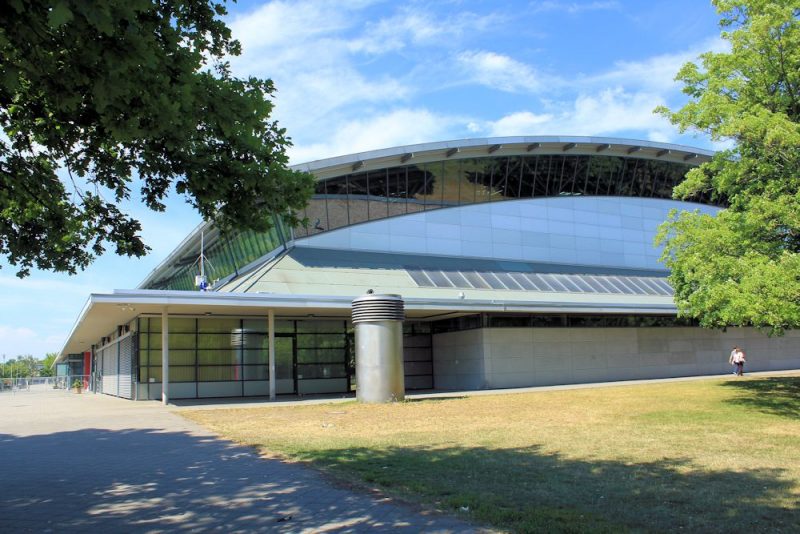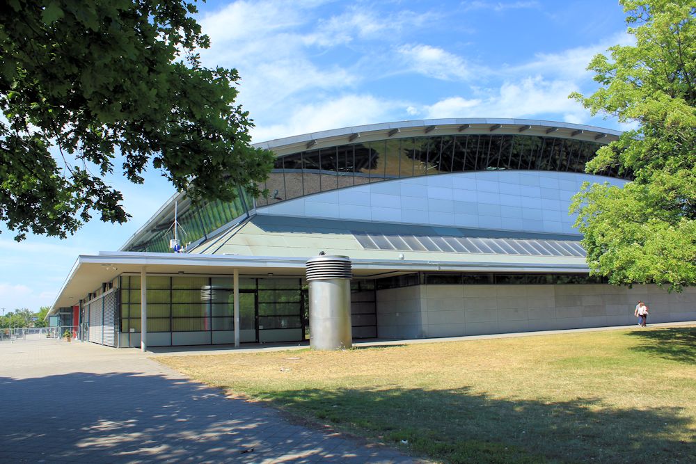 Die Arena Leipzig steht am östlichen Rand des Sportforums in einer Grünfläche.