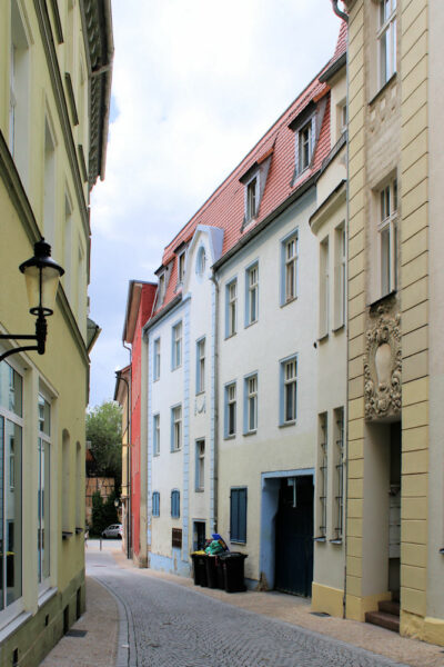 Das Wohnhaus Badergasse 19 steht zwischen Markt und Reußenplatz in Naumburg in geschlossener Bebauung.