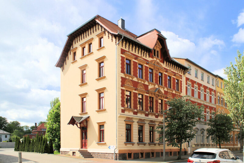 - Das Wohnhaus Bahnhofstraße 55 in Borna ist saniert.