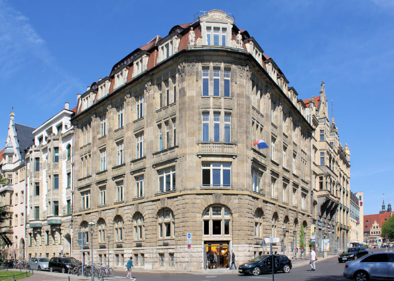 Das ehem. Bankhaus Meyer & Co. in Leipzig steht am Ring nahe der Thomaskirche in Blockrandbebauung.