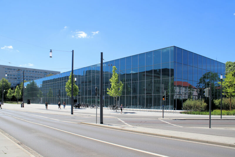 Das Bauhaus Museum Dessau steht in der Innenstadt von Dessau am Stadtpark als Solitärbau.