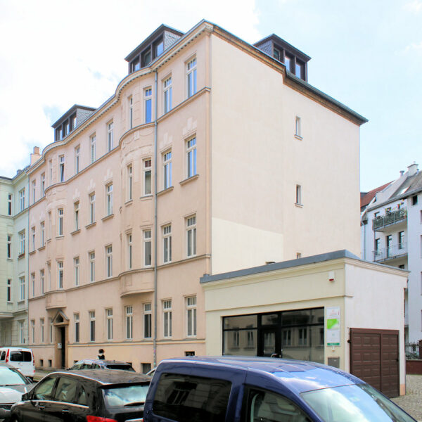Das Wohnhaus Beuchaer Straße 4 in Anger-Crottendorf steht geschlossener Blockrandbebauung nahe dem Ramdohrschen Park.