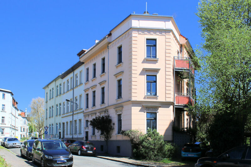 Das Wohnhaus Bleichertstraße 4 in Gohlis steht in offener Bebauung nahe der Erich-Kästner-Schule.
