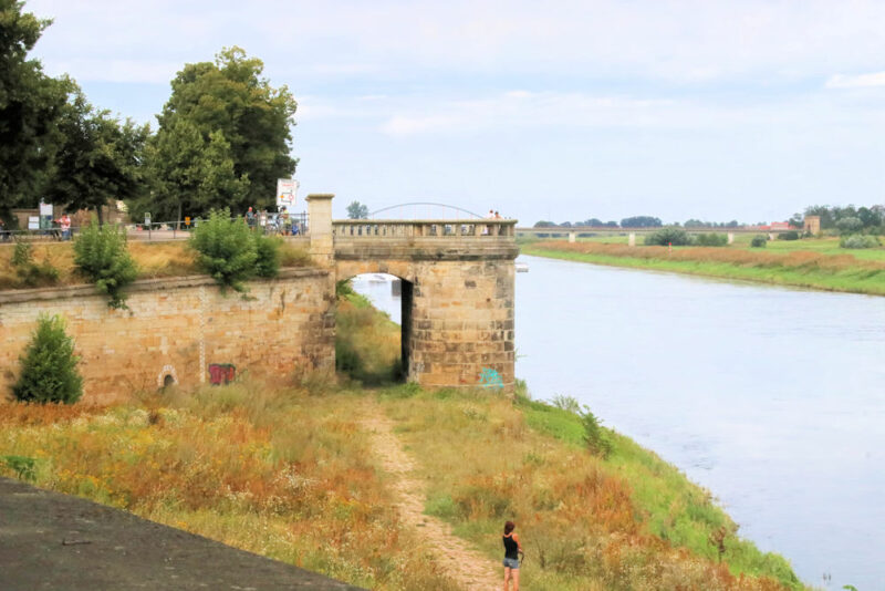 Der Brückenkopf der alten Elbebrücke in Torgau befindet sich unterhalb des Schlosses Hartenfels.
