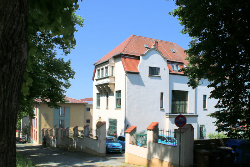 Die Caritas-Sozialstation steht zwischen dem Schloss Moritzburg und dem Neumarkt in Zeitz in offener Bebauung.