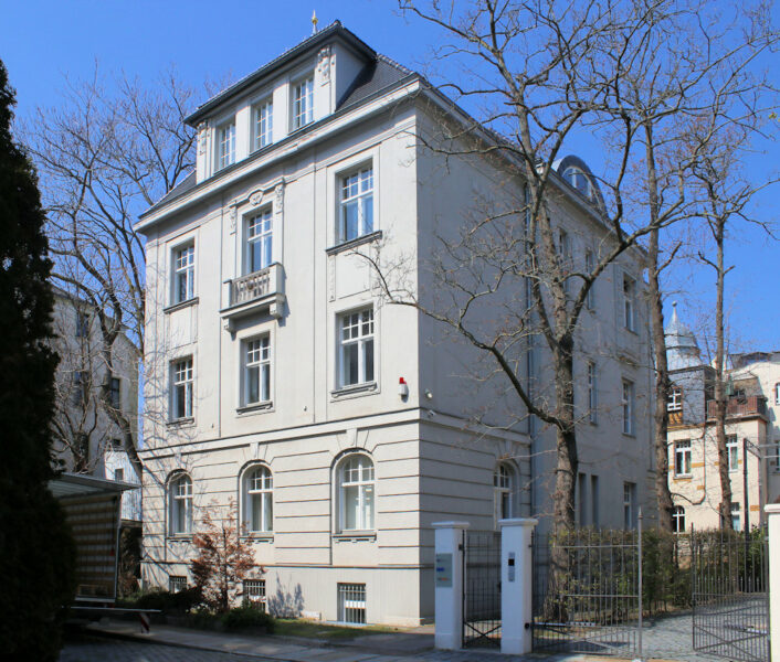 Das Wohnhaus Chopinstraße 9 in Leipzig steht im Graphischen Viertel in Leipzig zwischen Marienplatz und Wintergartenhochhaus in offener Blockrandbebauung.