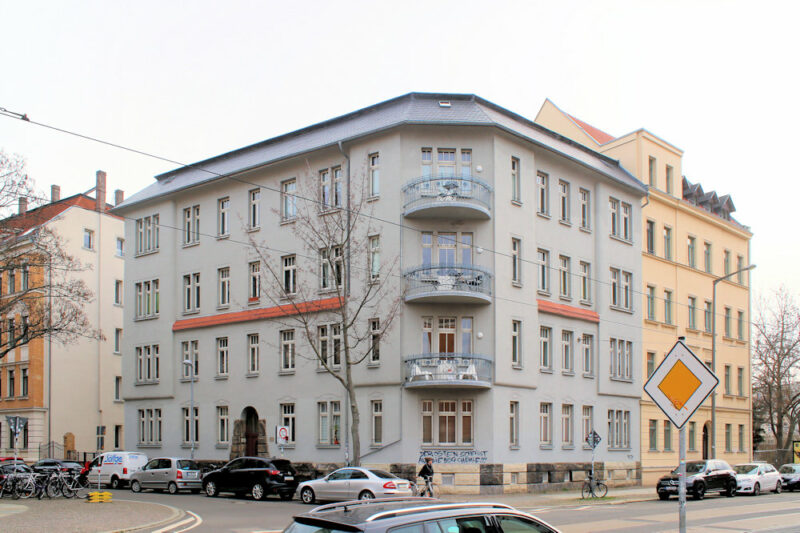 Das Wohnhaus Comeniusstraße 12 in Neustadt-Neuschönefeld steht in geschlossener Blockrandbebauung nahe dem Elsapark.