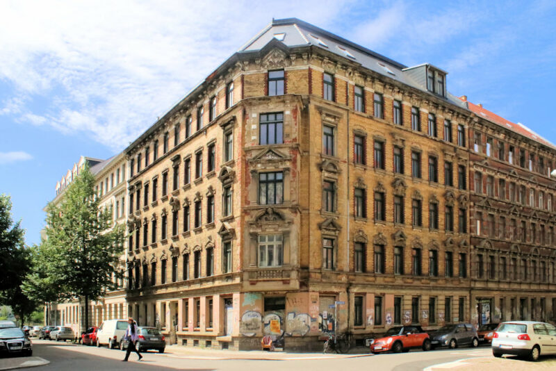 Das Wohnhaus Einertstraße 3 in Neustadt-Neuschönefeld steht in geschlossener Blockrandbebauung zwischen der Eisenbahnstraße und der Rosa-Luxemburg-Straße.
