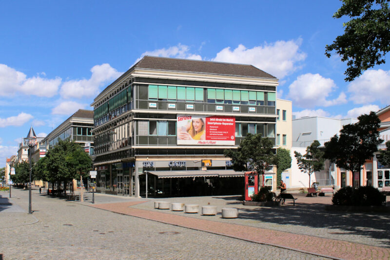 Die Elbegalerie steht nordwestlich der Altstadt von Riesa nahe dem Alexander-Puschkin-Platz als Solitärbau.