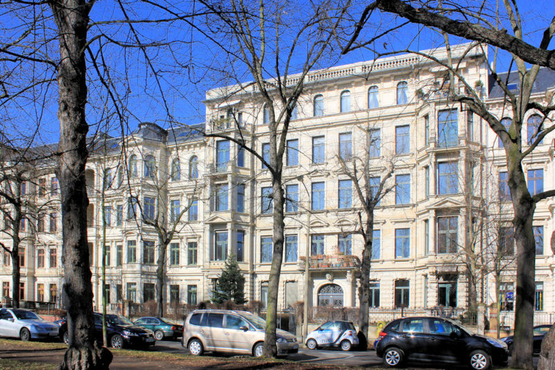 Das Wohnhaus Ferdinand-Lassalle-Straße 16 in Leipzig steht am Johannapark nahe der Lutherkirche in geschlossener Blockrandbebauung.