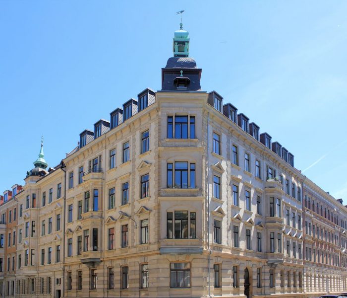 - Das Wohnhaus Funkenburgstraße 16 in Leipzig ist saniert.