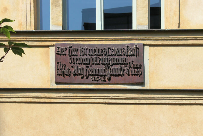 Der Herr ist meines Lebens Kraft / vor wem sollte mir grauen. / Hier wohnte Aug. Hermann Francke Pfarrer an St. Ulrich / 1715-1727