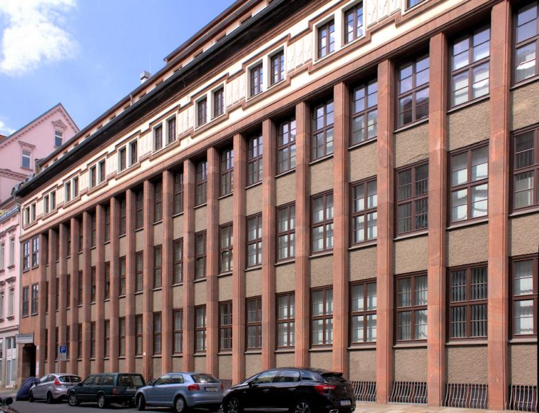 Das Grassi-Textilmessehaus Leipzig steht südlich der Innenstadt nahe der Peterskirche in Blockrandbebauung.