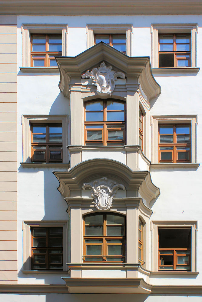- Putzfassade, asymmetrisch angeordneter, barocker Kastenerker