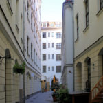- schmaler Durchgang eines älteren Handelshofes und der Kaufhalle, Verbindung zum Barfußgässchen, Fensterputzerbrunnen