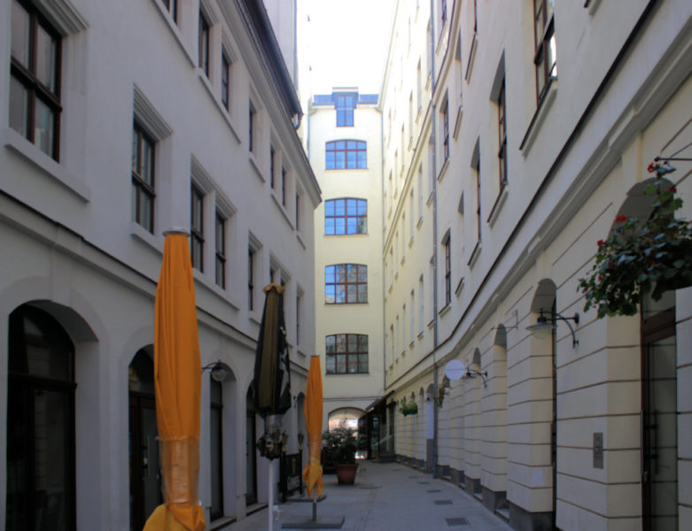Die Handwerkerpassage in Leipzig verläuft parallel zum Barfußgässchen und verbindet den Markt mit der Klostergasse.