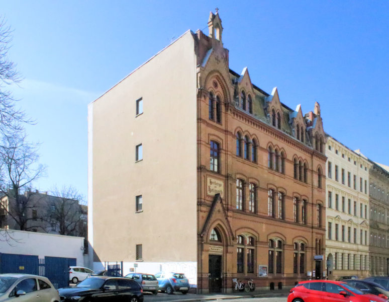 Das Heim der Inneren Mission in Leipzig steht in geschlossener Blockrandbebauung zwischen der Michaeliskirche und dem ehem. Städtischen Leihamt.
